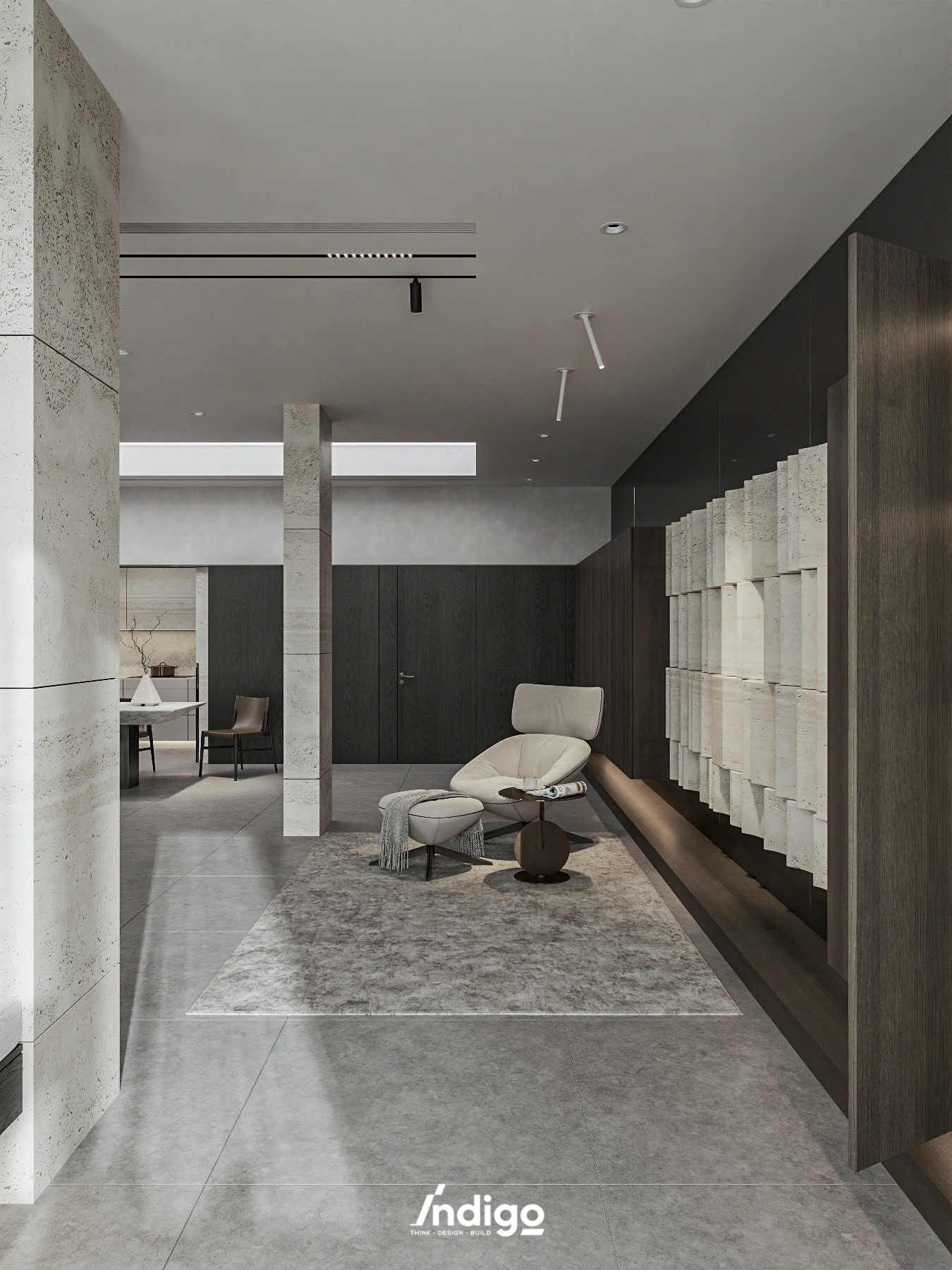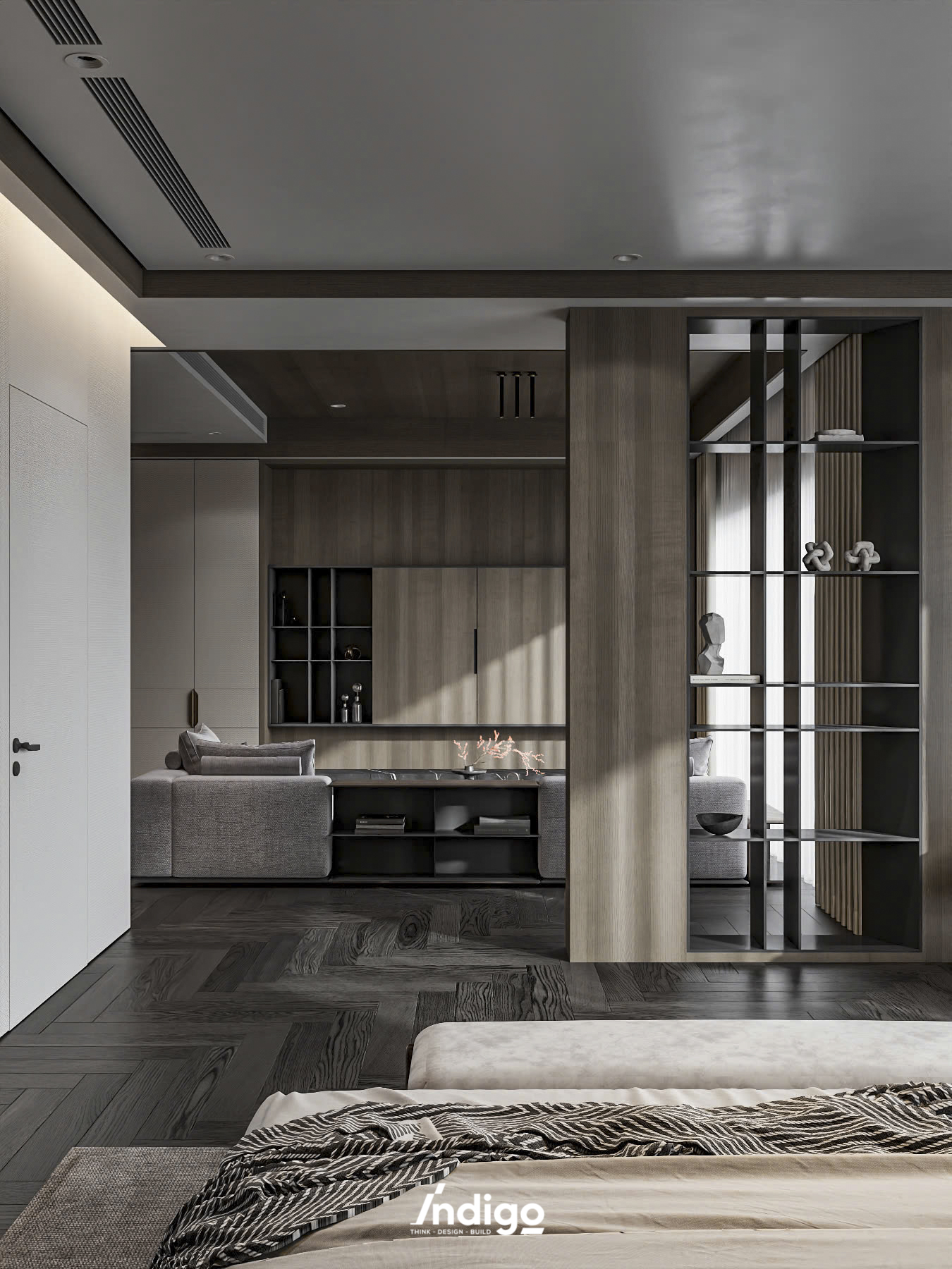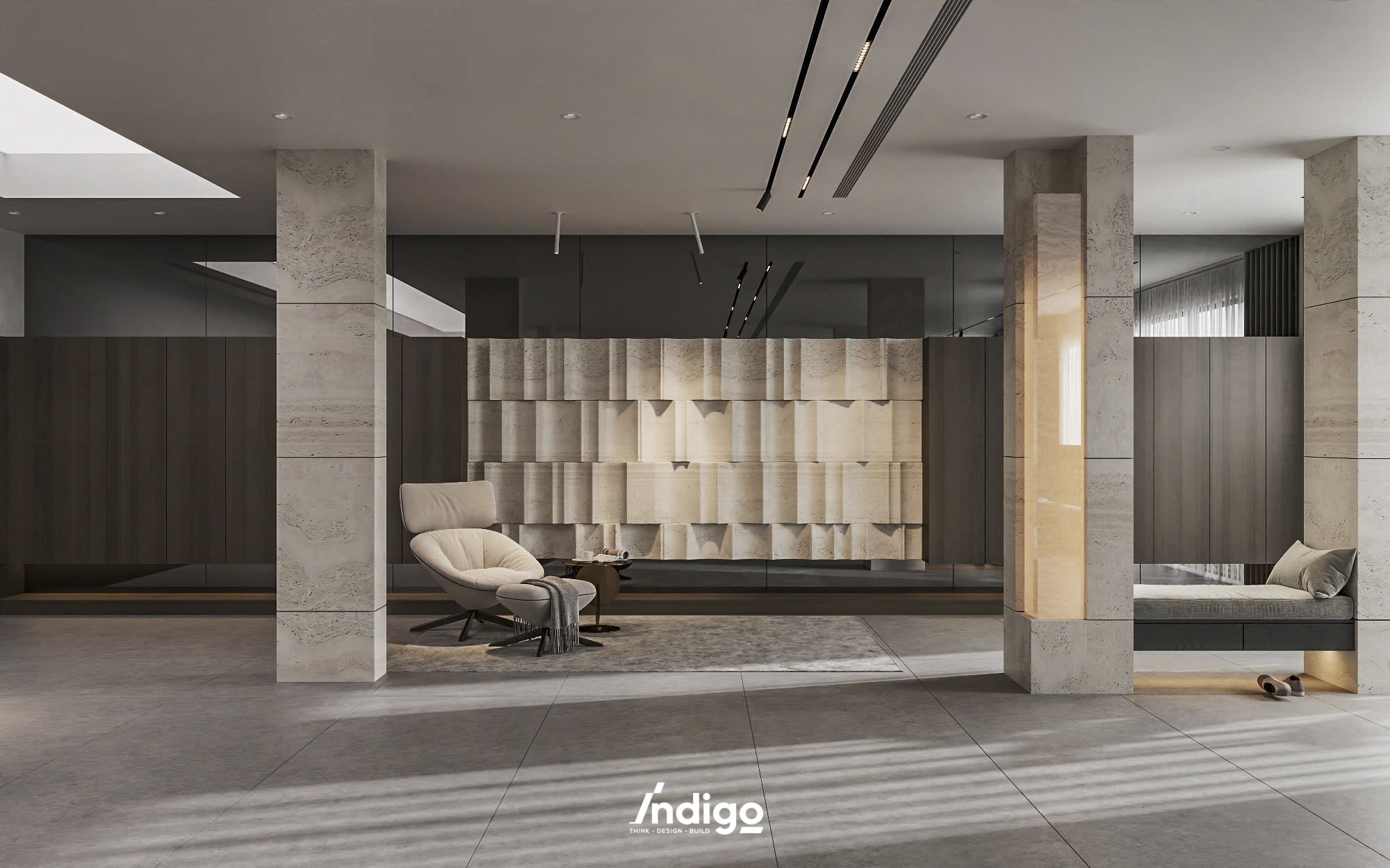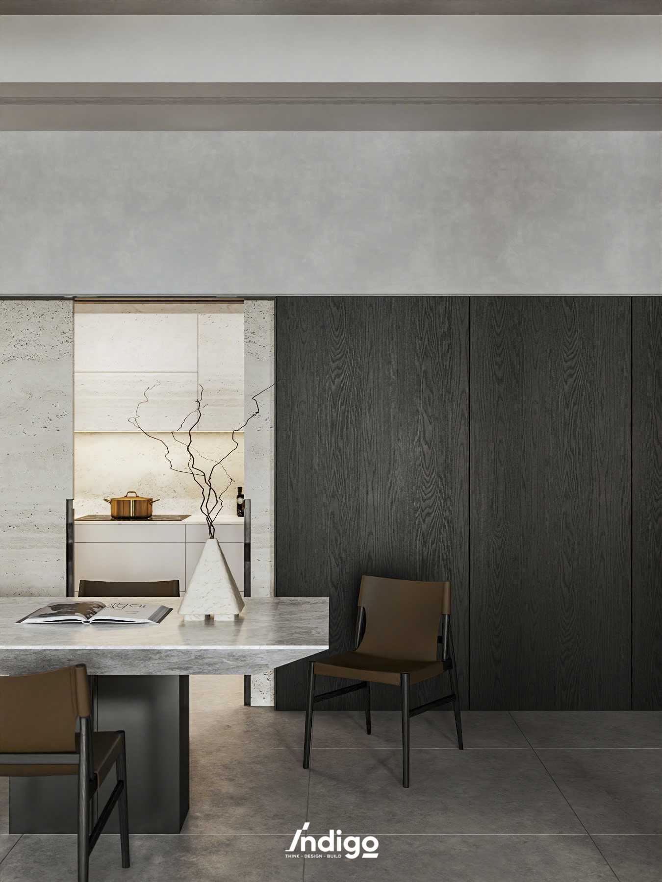 Từ những yêu cầu của gia chủ về chất liệu và phong cách, Indigo đem đến màu thời gian tối giản, cảm giác “thuộc về ” chân thực, yên bình, thư thái khi đặt chân vào.