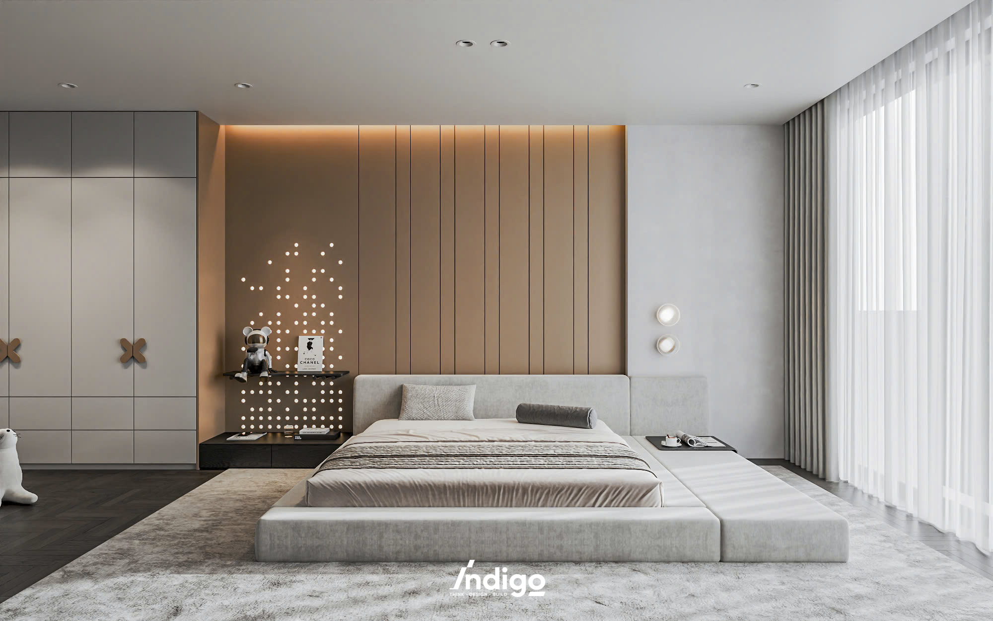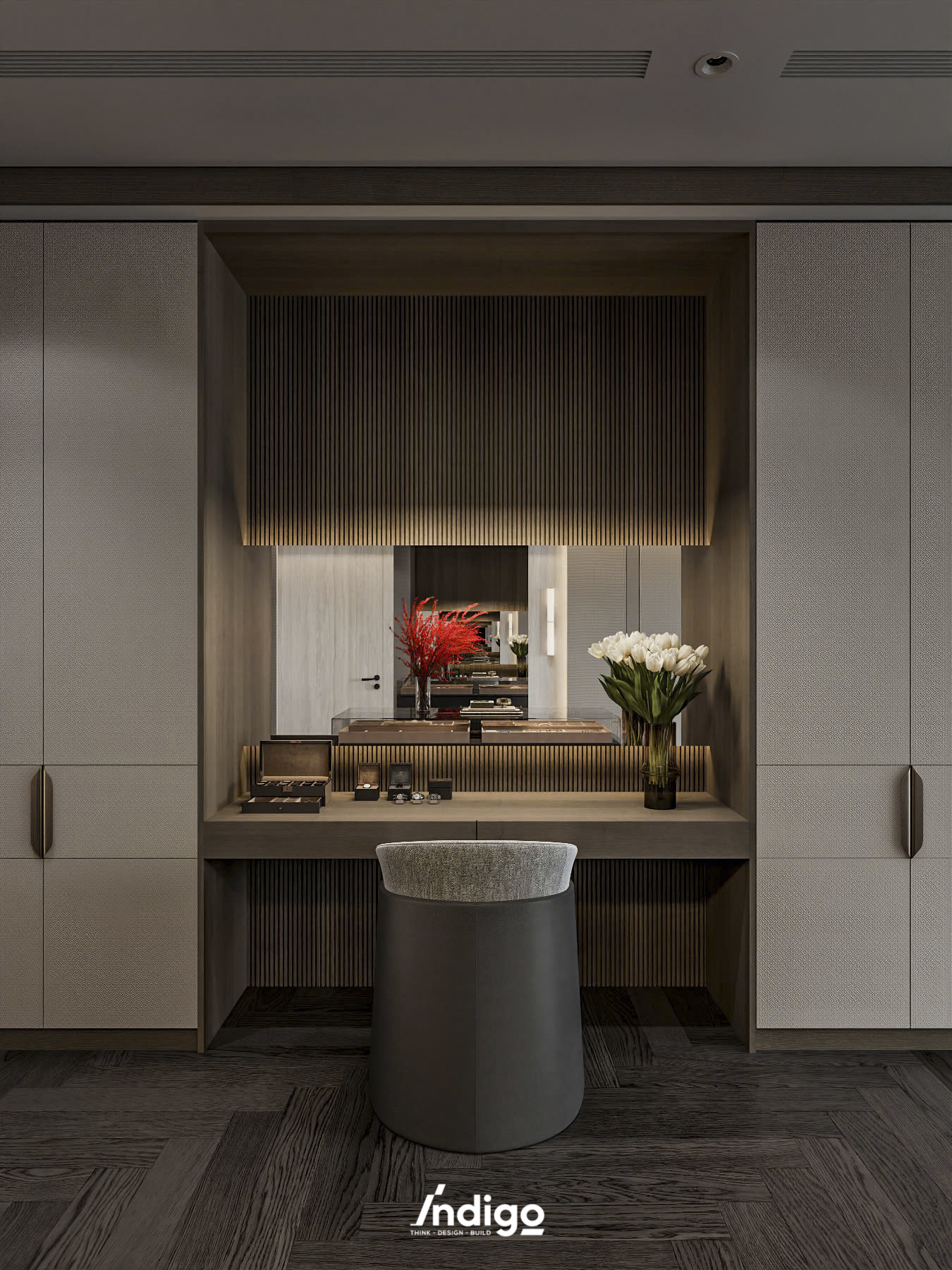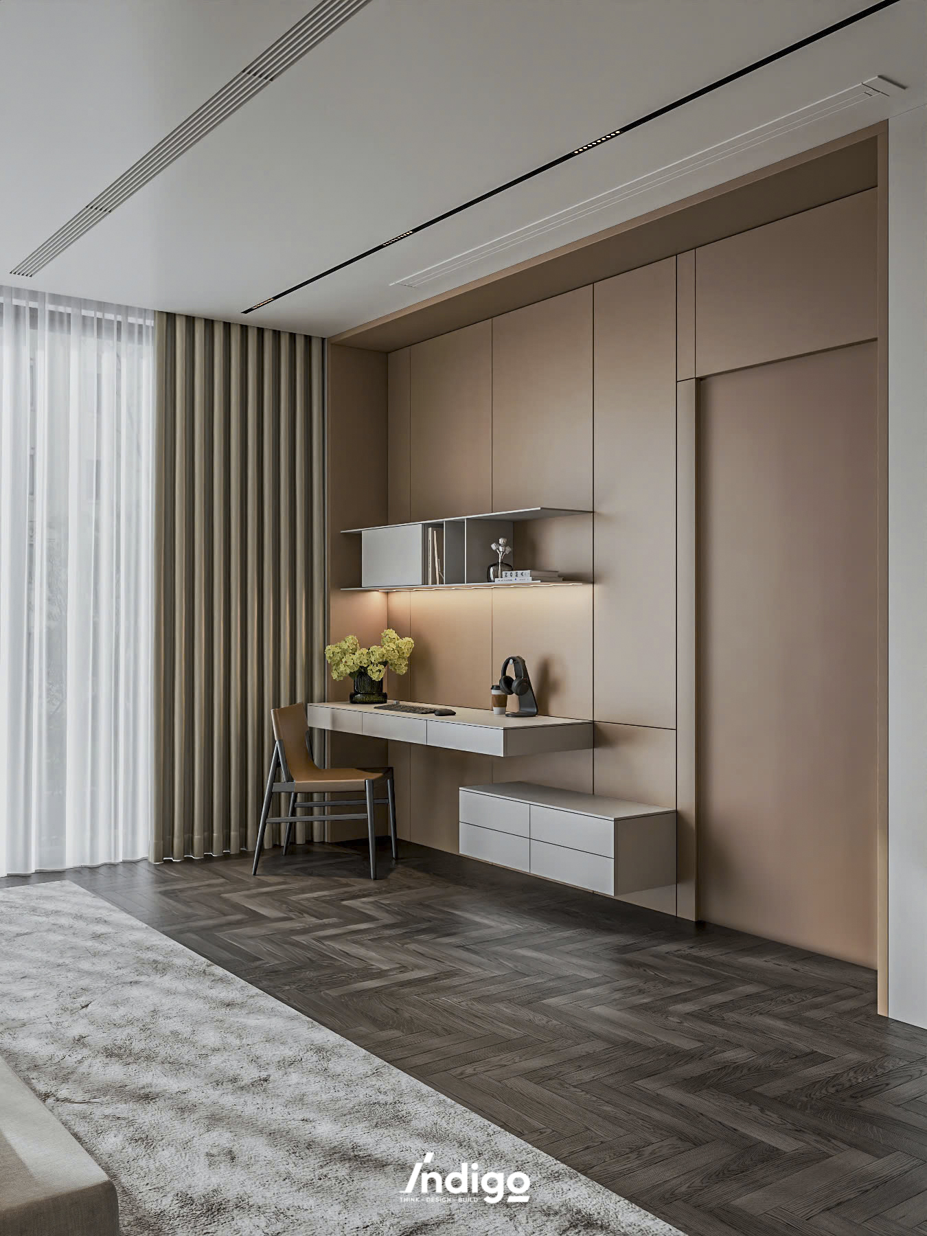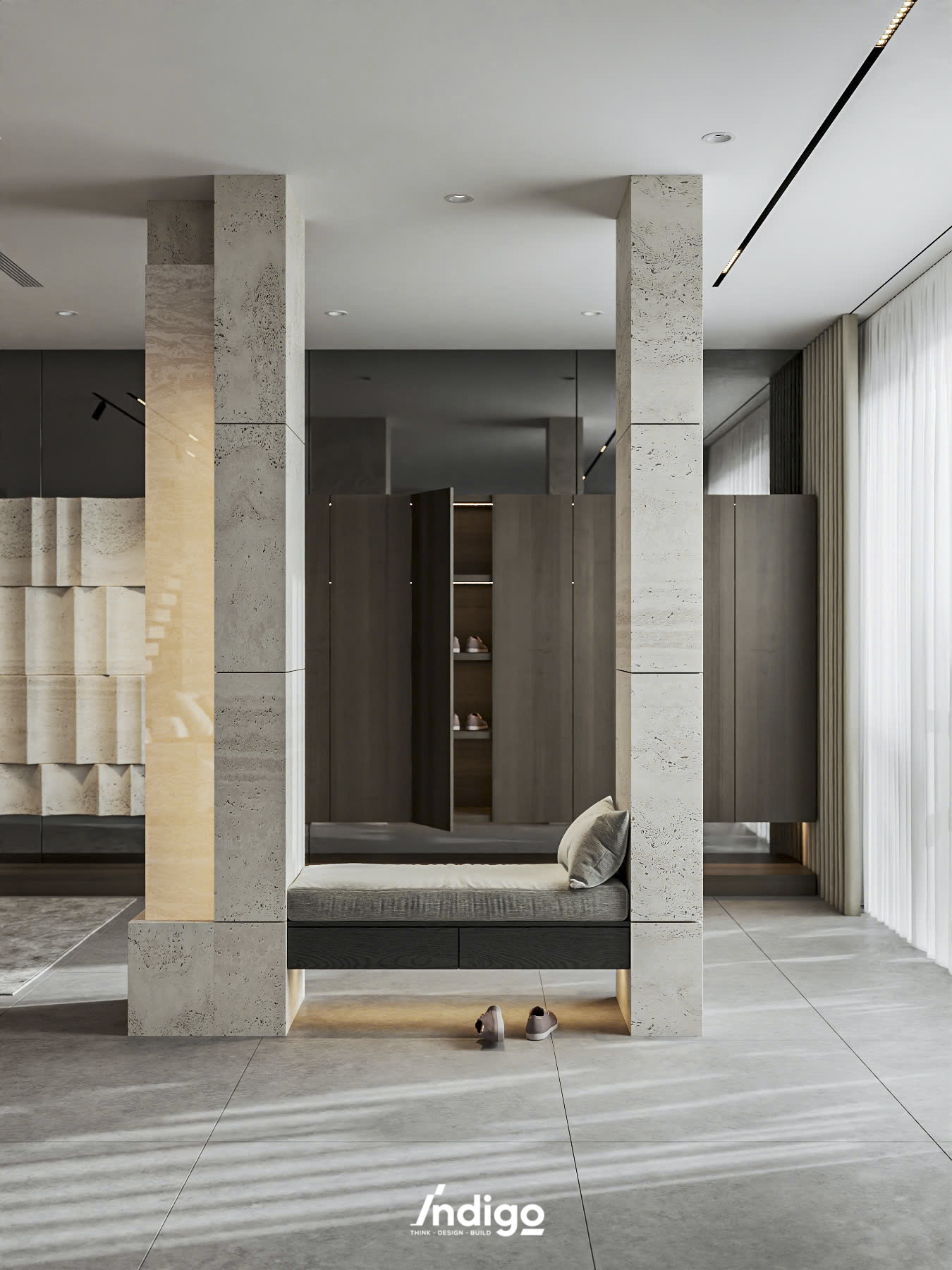 Từ những yêu cầu của gia chủ về chất liệu và phong cách, Indigo đem đến màu thời gian tối giản, cảm giác “thuộc về ” chân thực, yên bình, thư thái khi đặt chân vào.