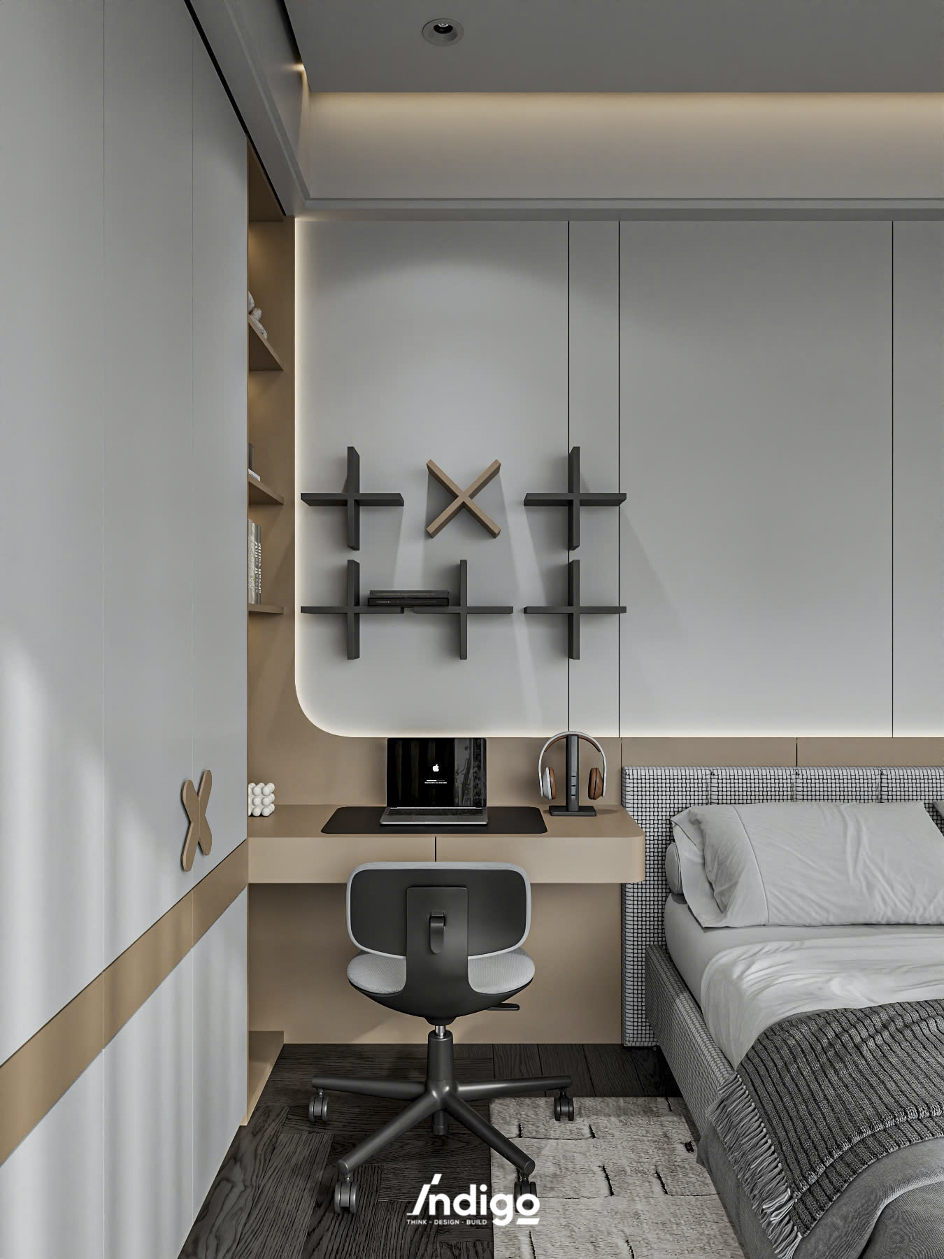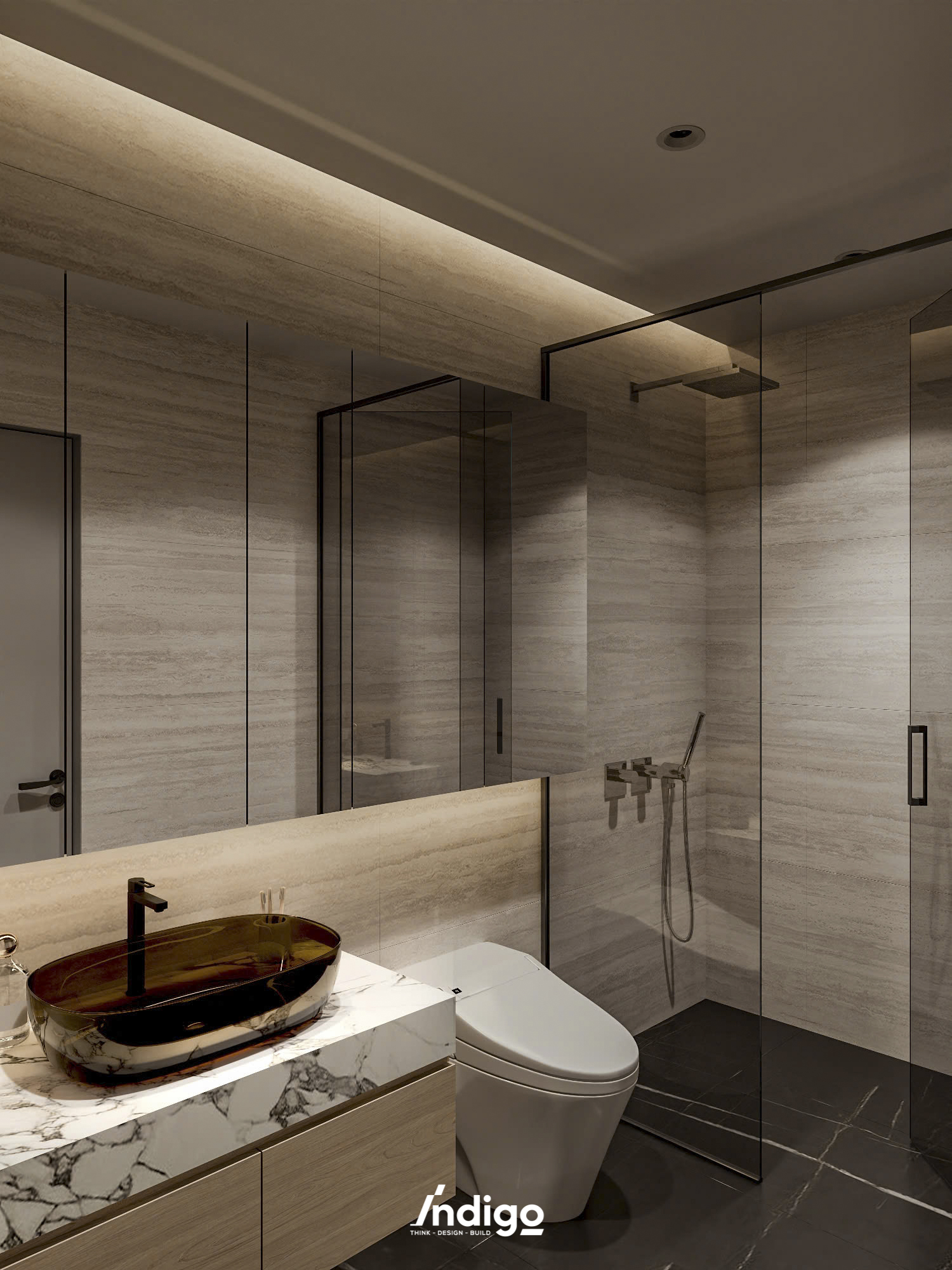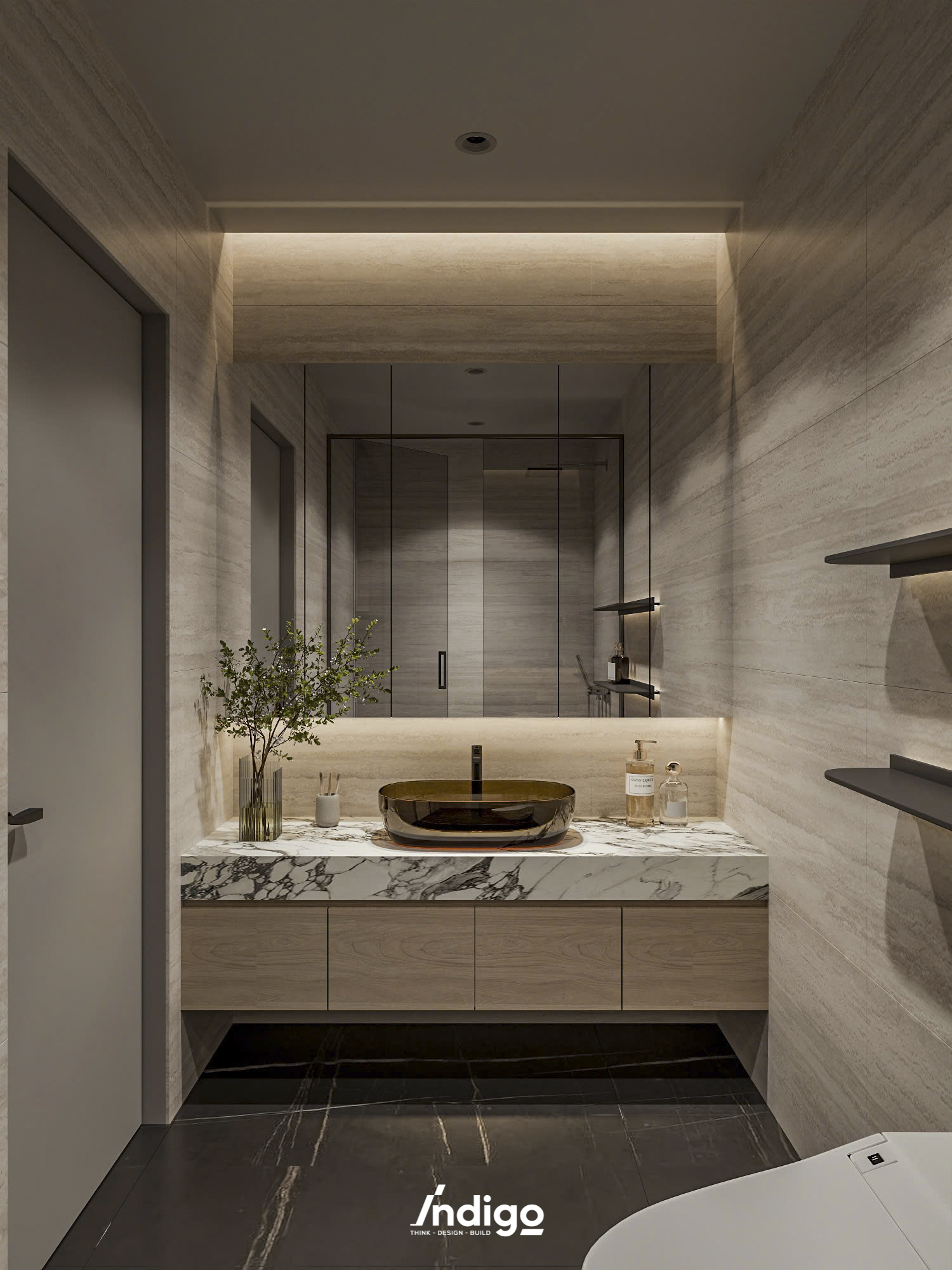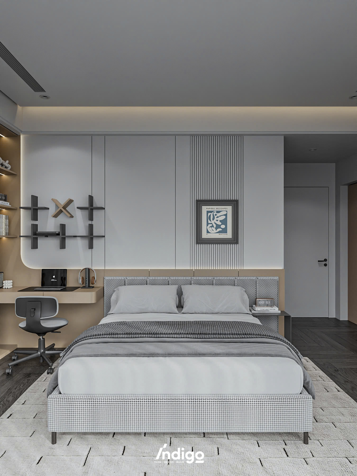 Từ những yêu cầu của gia chủ về chất liệu và phong cách, Indigo đem đến màu thời gian tối giản, cảm giác “thuộc về ” chân thực, yên bình, thư thái khi đặt chân vào.